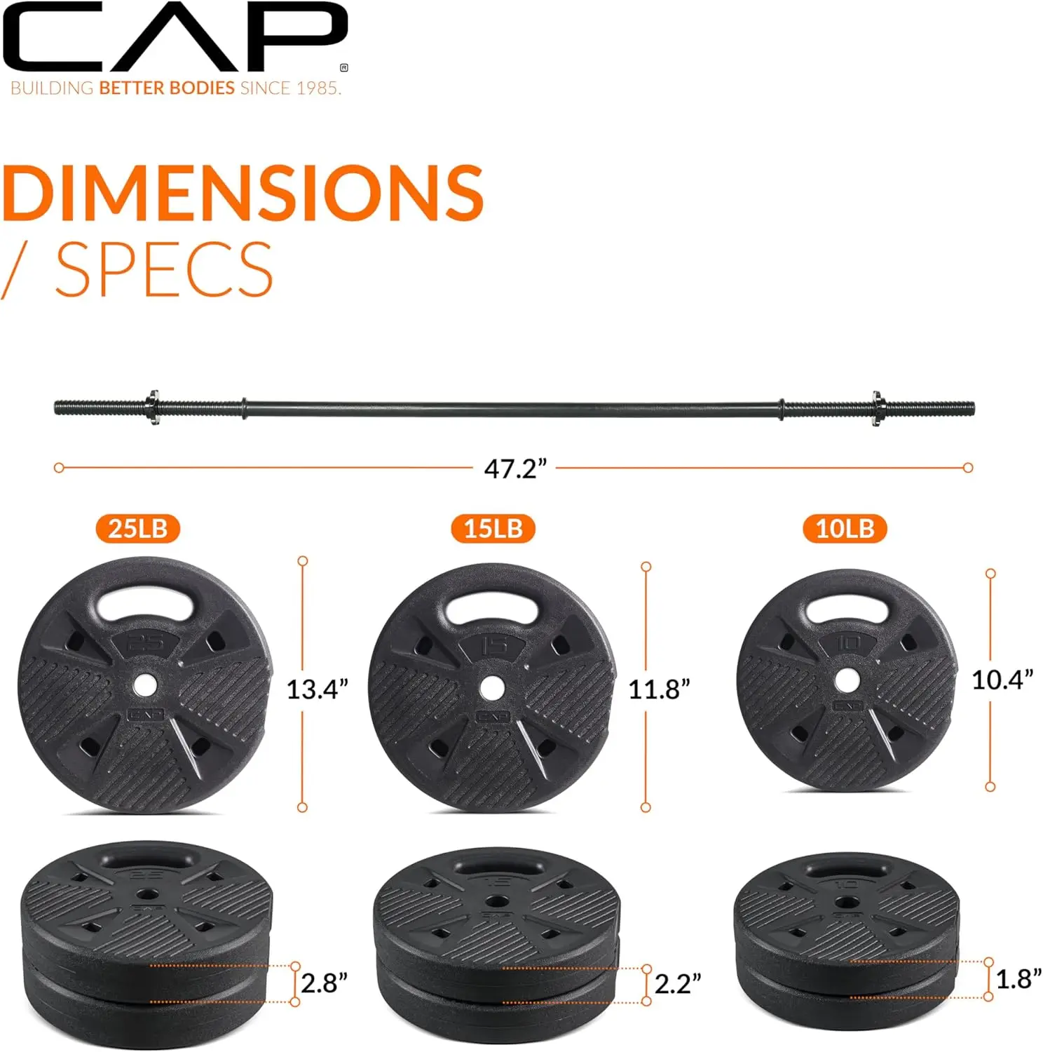 This complete barbell set is designed to enhance your home gym experience with durable components and versatile functionality. Key features include: - **Complete 100 LB Barbell Set**: Includes a 47-inch threaded bar, two threaded star collars, and cement grip plates in pairs of 10 LB, 15 LB, and 25 LB. This allows for customizable weight configurations to suit various strength levels and training goals. - **Durable Cement-Filled Grip Plates**: The plates are filled with cement and feature a grip-style design with a reinforced protective shell. This construction ensures long-lasting performance, resistance to wear and tear, and easy handling during workouts. - **Sturdy Steel Hollow Bar**: The lightweight yet robust threaded bar is engineered to support up to 100 LB total weight capacity. It is ideal for beginner and intermediate lifters, providing a balance of strength and manageability for safe lifting. - **Secure Threaded Collars**: Equipped with threaded sleeve ends and star collars that lock plates tightly in place. This enhances safety and stability during exercises, preventing slippage and ensuring consistent performance. - **Versatile Home Gym Training**: Perfect for a wide range of exercises including squats, presses, deadlifts, curls, and general strength-building routines. The compact design makes it suitable for home use without requiring excessive space. This set is crafted from high-quality materials to deliver reliable performance over time. Whether you're starting your fitness journey or looking to upgrade your home gym equipment, this barbell set offers the tools needed for effective strength training. Its user-friendly design promotes ease of assembly and storage, making it a practical choice for daily workouts.