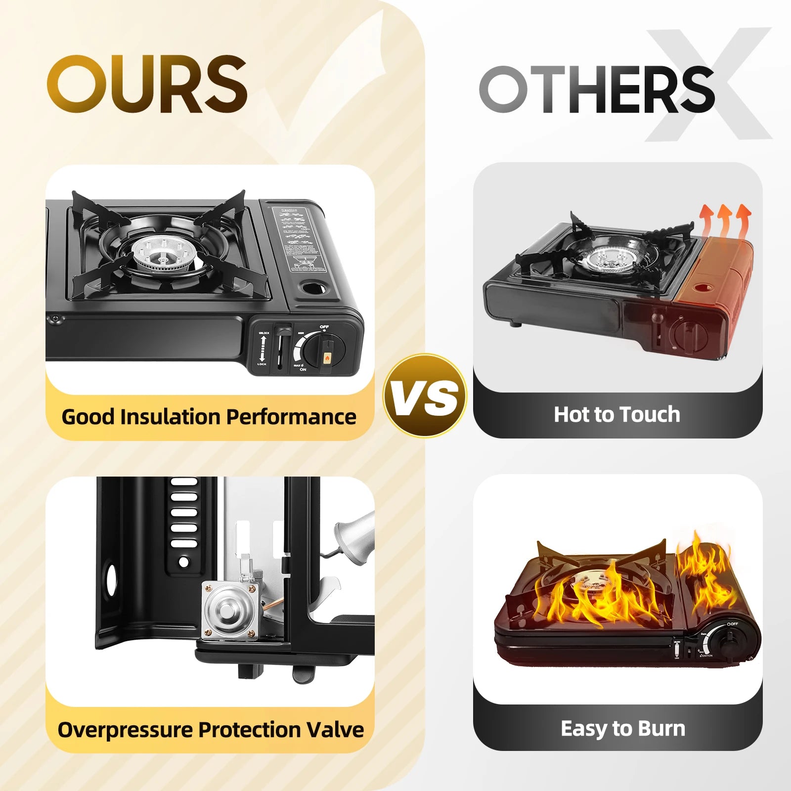 Safe to Use: Its iron shell with a spraying process has good insulation performance, making it less likely for you to get accidentally scalded while grilling. Its protection valve inside can automatically disconnect the tank and stop the gas supply when the pressure is too high, making every party full of cooking fun without any worries.