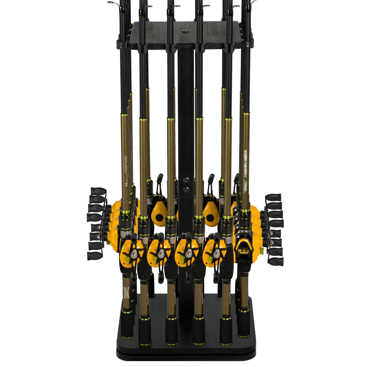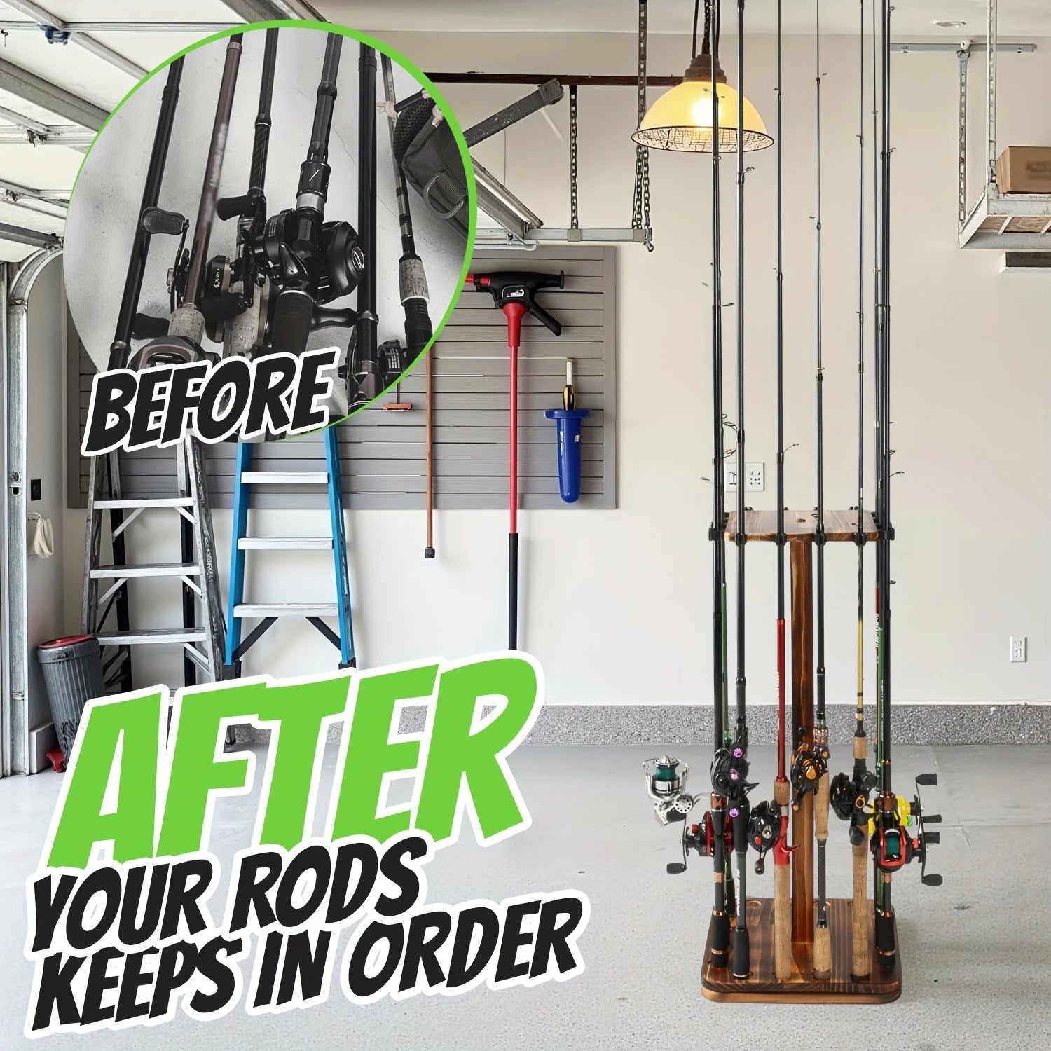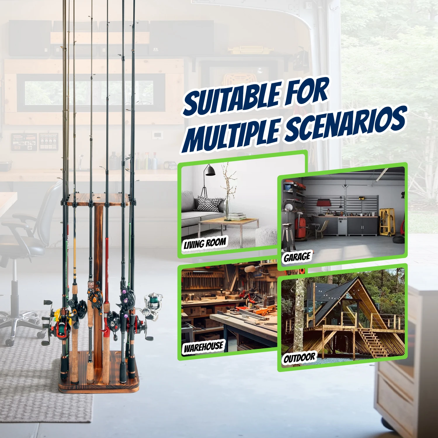 Fishing Rod Holder 360° Rotating Wooden Rod Pole Rack New Style Holds up to 16 rods Fishing Organizer for Space-Saving Fishing R