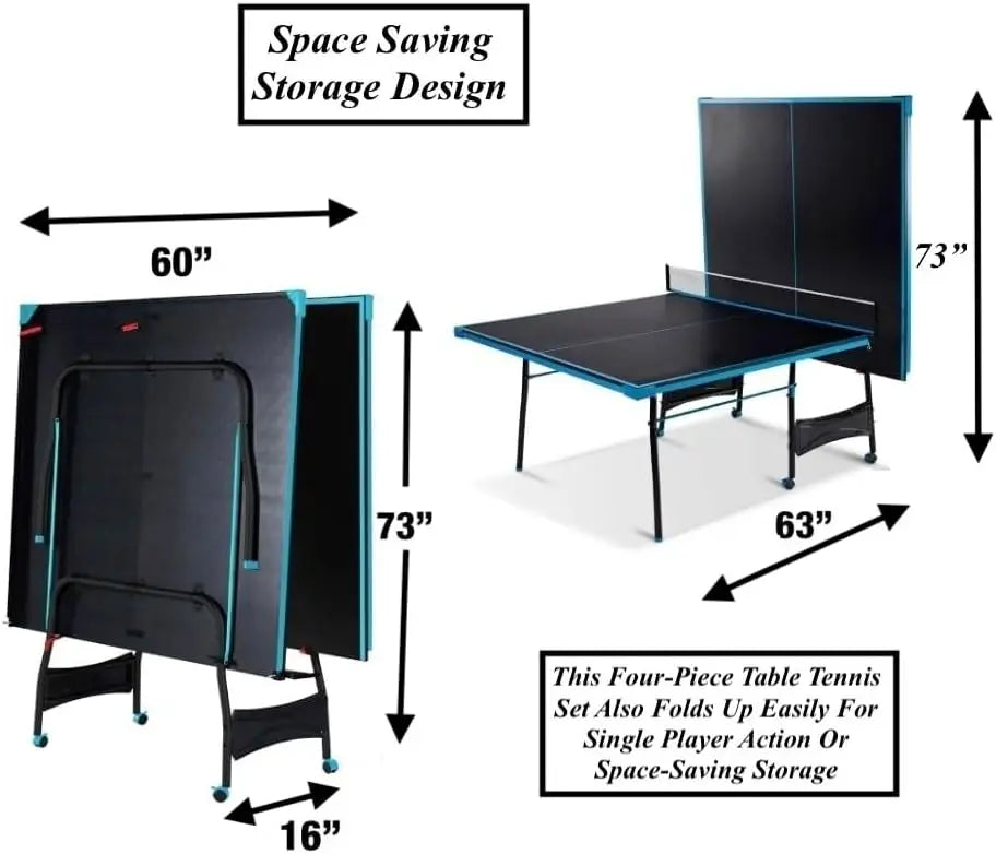 Folding Rolling Table Tennis Table Indoor Ping Pong Table with Paddles Balls Net Movement Perfect Christmas New Year Holiday