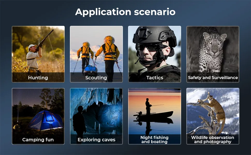 【Large Screen & Lift-to-Wake Technology】: 3DVR Night vision goggles for adult has multiple sensitive sensors and the built-in giant screen, equivalent to watching a 100" display from 2.5 meters away. Immersing you in a realistic visual environment wherever you are. The lift-to-wake feature quickly activates the device: the display turns on when you approach the eyepiece and turns off when you move away, allowing you to capture exciting moments effortlessly, without complicated setups.