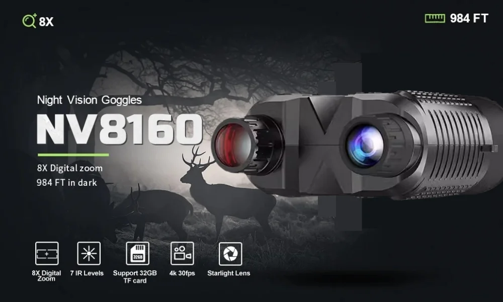 NV8160 Night Vision Binoculars for Adults, Head Mounted Tactical Helmet Night Vision Goggles 8X Digital Zoom for Outdoor Hunting