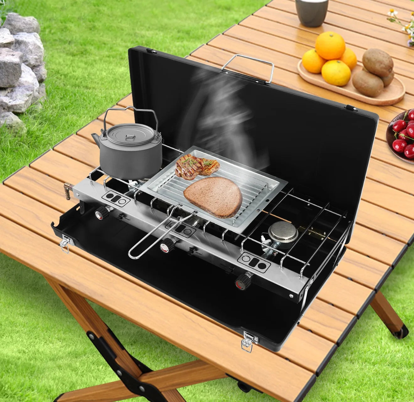 Powerful, portable outdoor cooking starts here with a foldable three-burner camping stove that delivers fast, even heat in any weather.
