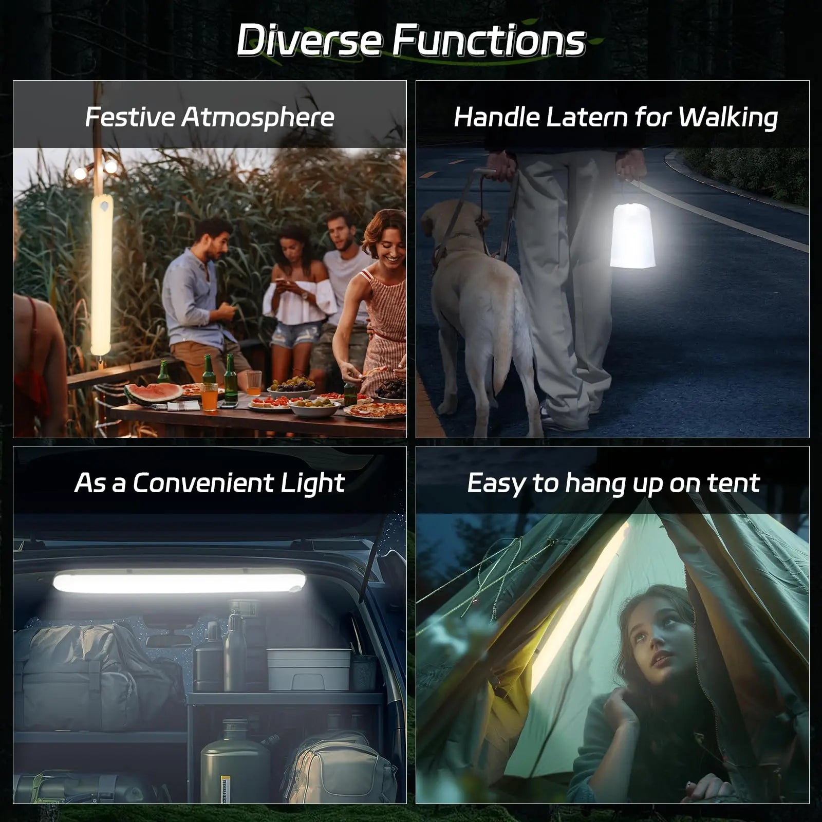 - Power and versatility: USB-rechargeable with a 2000mAh battery; long TPU-covered cable and double waterproof design; magnetic base and back strap for hands-free use in camping, hiking, fishing, beach nights, and parties.