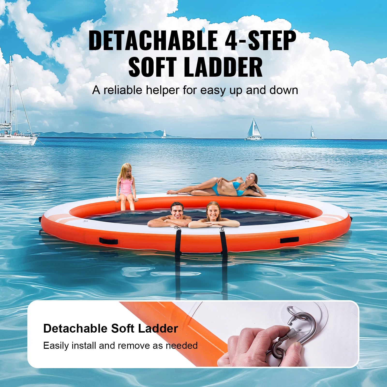 Convenient Soft Ladder Included: With a detachable four-step soft ladder, getting on and off the floating platform is a breeze. Perfect for kids and adults alike, it is especially suitable for those with weaker swimming abilities, making your water adventures more enjoyable and secure.