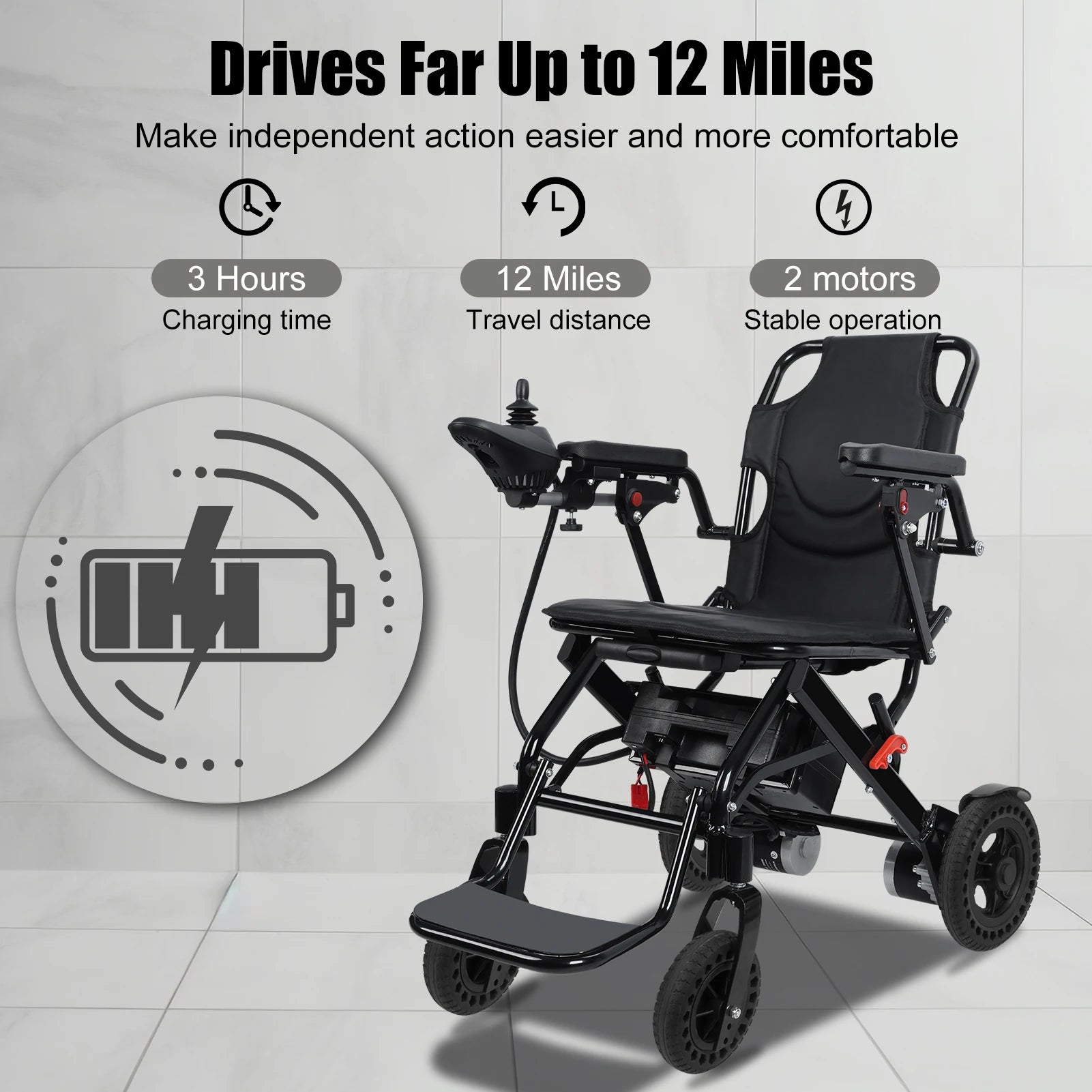 Experience freedom on the move with a foldable, high-performance electric wheelchair that travels up to 12 miles on a single charge.